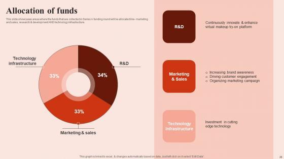 This slide showcases areas where the funds that are collected in Series A funding round will be allocated like- marketing and sales, research and development AND technology infrastructure. Find a pre-designed and impeccable Allocation Of Funds Beauty Brands And Retailers Company Fund Raising Structure PDF. The templates can ace your presentation without additional effort. You can download these easy-to-edit presentation templates to make your presentation stand out from others. So, what are you waiting for Download the template from Slidegeeks today and give a unique touch to your presentation. This slide showcases areas where the funds that are collected in Series A funding round will be allocated like- marketing and sales, research and development AND technology infrastructure.