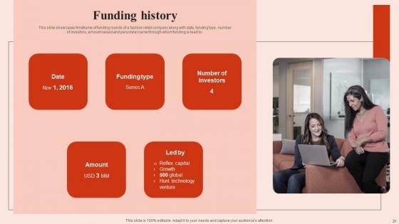 This slide showcases timeframe of funding rounds of a fashion retail company along with date, funding type, number of investors, amount raised and personnel name through whom funding is lead by. Do you have an important presentation coming up Are you looking for something that will make your presentation stand out from the rest Look no further than Funding History Beauty Brands And Retailers Company Fund Raising Sample PDF. With our professional designs, you can trust that your presentation will pop and make delivering it a smooth process. And with Slidegeeks, you can trust that your presentation will be unique and memorable. So why wait Grab Funding History Beauty Brands And Retailers Company Fund Raising Sample PDF today and make your presentation stand out from the rest This slide showcases timeframe of funding rounds of a fashion retail company along with date, funding type, number of investors, amount raised and personnel name through whom funding is lead by.