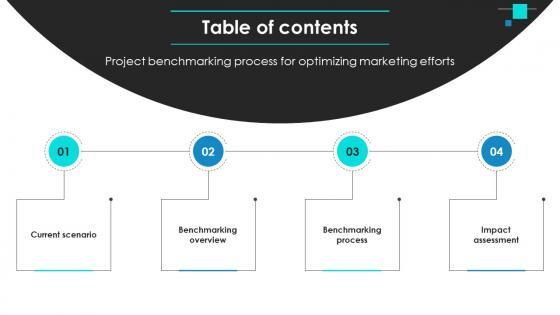 If your project calls for a presentation, then Slidegeeks is your go-to partner because we have professionally designed, easy-to-edit templates that are perfect for any presentation. After downloading, you can easily edit Table Of Contents Project Benchmarking Process For Optimizing Marketing Efforts CRP DK SS V and make the changes accordingly. You can rearrange slides or fill them with different images. Check out all the handy templates Our Table Of Contents Project Benchmarking Process For Optimizing Marketing Efforts CRP DK SS V are topically designed to provide an attractive backdrop to any subject. Use them to look like a presentation pro.