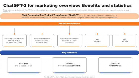 Chatgpt 3 For Marketing Overview Benefits And Statistics Ppt Infographic Template Slide Download PDF