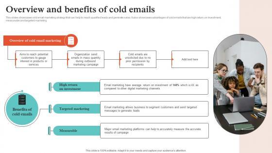 This slides showcases cold email marketing strategy that can help to reach qualified leads and generate sales. It also showcases advantages of cold emails that are high return on investment, measurable and targeted marketing. Find a pre-designed and impeccable Remote Sales Plan For Overview And Benefits Of Cold Emails Strategy SS V. The templates can ace your presentation without additional effort. You can download these easy-to-edit presentation templates to make your presentation stand out from others. So, what are you waiting for Download the template from Slidegeeks today and give a unique touch to your presentation. This slides showcases cold email marketing strategy that can help to reach qualified leads and generate sales. It also showcases advantages of cold emails that are high return on investment, measurable and targeted marketing.