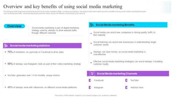 The following slide showcases brief introduction to social media marketing SMM, including key statistics. The slide provides information about key benefits of using social media marketing techniques such as driving web traffic, understanding target customer needs, being cost-effective, and building customer trust. Do you have to make sure that everyone on your team knows about any specific topic I yes, then you should give Comprehensive Guide To Build Marketing Overview And Key Benefits Of Using Social Media Summary PDF a try. Our experts have put a lot of knowledge and effort into creating this impeccable Comprehensive Guide To Build Marketing Overview And Key Benefits Of Using Social Media Summary PDF. You can use this template for your upcoming presentations, as the slides are perfect to represent even the tiniest detail. You can download these templates from the Slidegeeks website and these are easy to edit. So grab these today