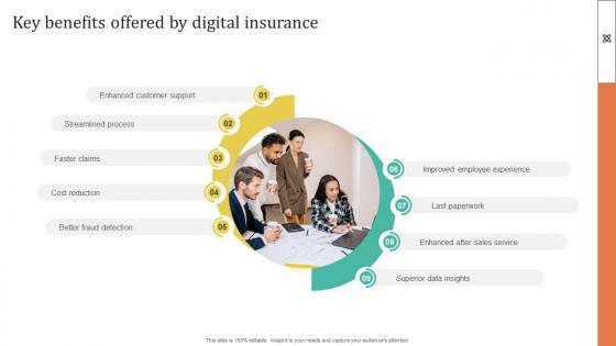 Find a pre-designed and impeccable Technology Trends In Online Insurance Key Benefits Offered By Digital Insurance. The templates can ace your presentation without additional effort. You can download these easy-to-edit presentation templates to make your presentation stand out from others. So, what are you waiting for Download the template from Slidegeeks today and give a unique touch to your presentation. Our Technology Trends In Online Insurance Key Benefits Offered By Digital Insurance are topically designed to provide an attractive backdrop to any subject. Use them to look like a presentation pro.