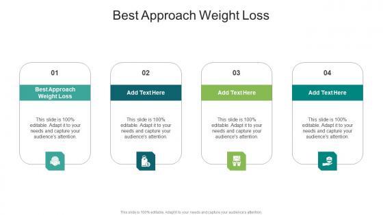 Introducing our well designed Best Approach Weight Loss In Powerpoint And Google Slides Cpb. This PowerPoint design presents information on topics like Best Approach Weight Loss. As it is predesigned it helps boost your confidence level. It also makes you a better presenter because of its high quality content and graphics. This PPT layout can be downloaded and used in different formats like PDF, PNG, and JPG. Not only this, it is available in both Standard Screen and Widescreen aspect ratios for your convenience. Therefore, click on the download button now to persuade and impress your audience. Our Best Approach Weight Loss In Powerpoint And Google Slides Cpb are topically designed to provide an attractive backdrop to any subject. Use them to look like a presentation pro.