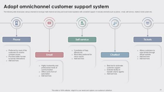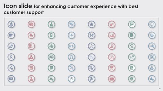 This Enhancing Customer Experience With Best Customer Support Ppt Slide is designed to help you retain your audiences attention. This content-ready PowerPoint Template enables you to take your audience on a journey and share information in a way that is easier to recall. It helps you highlight the crucial parts of your work so that the audience does not get saddled with information download. This seventy five-slide PPT Deck comes prepared with the graphs and charts you could need to showcase your information through visuals. You only need to enter your own data in them. Download this editable PowerPoint Theme and walk into that meeting with confidence. Our Enhancing Customer Experience With Best Customer Support Ppt Slide are topically designed to provide an attractive backdrop to any subject. Use them to look like a presentation pro.