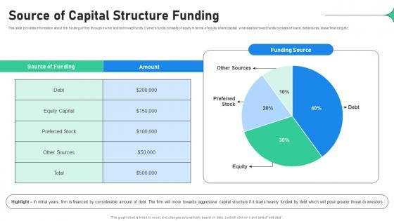 This slide provides information about the funding of firm through owner and borrowed funds. Owners funds consists of equity in terms of equity share capital, whereas borrowed funds consists of loans, debentures, lease financing etc. Coming up with a presentation necessitates that the majority of the effort goes into the content and the message you intend to convey. The visuals of a PowerPoint presentation can only be effective if it supplements and supports the story that is being told. Keeping this in mind our experts created Source Of Capital Structure Funding Increasing Profitability Through Better Product to reduce the time that goes into designing the presentation. This way, you can concentrate on the message while our designers take care of providing you with the right template for the situation. This slide provides information about the funding of firm through owner and borrowed funds. Owners funds consists of equity in terms of equity share capital, whereas borrowed funds consists of loans, debentures, lease financing etc.