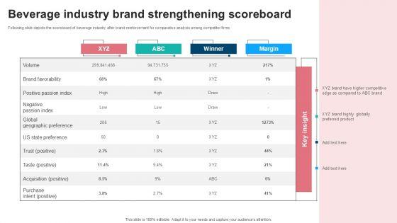 Following slide depicts the scoreboard of beverage industry after brand reinforcement for comparative analysis among competitor firms. Showcasing this set of slides titled Beverage Industry Brand Strengthening Scoreboard Icons PDF. The topics addressed in these templates are Brand Favorability, Positive Passion Index, Negative Passion Index. All the content presented in this PPT design is completely editable. Download it and make adjustments in color, background, font etc. as per your unique business setting.