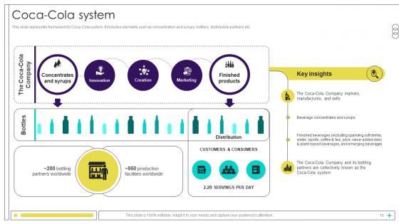 This slide represents framework for Coca-Cola system. It includes elements such as concentration and syrups, bottlers, distribution partners etc. If your project calls for a presentation, then Slidegeeks is your go-to partner because we have professionally designed, easy-to-edit templates that are perfect for any presentation. After downloading, you can easily edit Coca Cola System Beverage Manufacturer Company Profile Ppt Template CP SS V and make the changes accordingly. You can rearrange slides or fill them with different images. Check out all the handy templates This slide represents framework for Coca-Cola system. It includes elements such as concentration and syrups, bottlers, distribution partners etc.