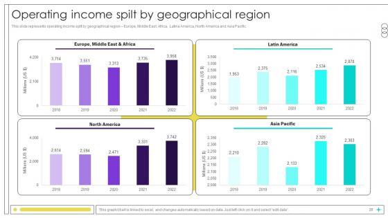 The best PPT templates are a great way to save time, energy, and resources. Slidegeeks have 100 percent editable powerpoint slides making them incredibly versatile. With these quality presentation templates, you can create a captivating and memorable presentation by combining visually appealing slides and effectively communicating your message. Download Operating Income Spilt By Geographical Region Beverage Manufacturer Company Profile Ppt Powerpoint CP SS V from Slidegeeks and deliver a wonderful presentation. This slide represents operating income spilt by geographical region Europe, Middle East, Africa, Latina America, North America and Asia Pacific.