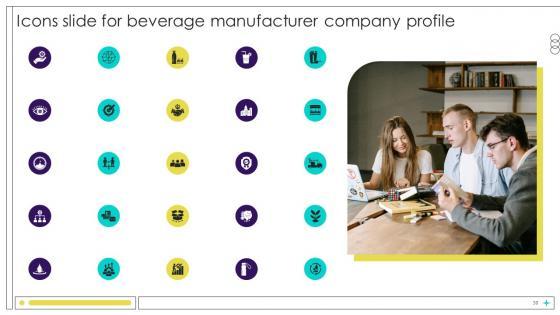 Introducing our well designed Icons Slide For Beverage Manufacturer Company Profile Ppt Powerpoint CP SS V set of slides. The slide displays editable icons to enhance your visual presentation. The icons can be edited easily. So customize according to your business to achieve a creative edge. Download and share it with your audience. Our Icons Slide For Beverage Manufacturer Company Profile Ppt Powerpoint CP SS V are topically designed to provide an attractive backdrop to any subject. Use them to look like a presentation pro.