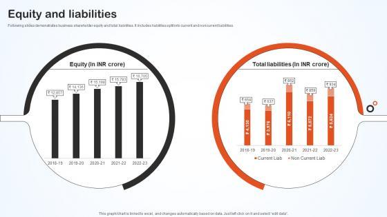 Following slides demonstrates business shareholder equity and total liabilities. It includes liabilities split into current and noncurrent liabilities. Crafting an eye-catching presentation has never been more straightforward. Let your presentation shine with this tasteful yet straightforward Equity And Liabilities Hero Bike Company Profile CP SS V template. It offers a minimalistic and classy look that is great for making a statement. The colors have been employed intelligently to add a bit of playfulness while still remaining professional. Construct the ideal Equity And Liabilities Hero Bike Company Profile CP SS V that effortlessly grabs the attention of your audience Begin now and be certain to wow your customers Following slides demonstrates business shareholder equity and total liabilities. It includes liabilities split into current and noncurrent liabilities.