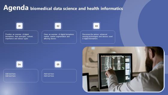 Get a simple yet stunning designed Agenda Biomedical Data Science And Health Informatics Topics Pdf. It is the best one to establish the tone in your meetings. It is an excellent way to make your presentations highly effective. So, download this PPT today from Slidegeeks and see the positive impacts. Our easy to edit Agenda Biomedical Data Science And Health Informatics Topics Pdf can be your go to option for all upcoming conferences and meetings. So, what are you waiting for Grab this template today. Our Agenda Biomedical Data Science And Health Informatics Topics Pdf are topically designed to provide an attractive backdrop to any subject. Use them to look like a presentation pro.