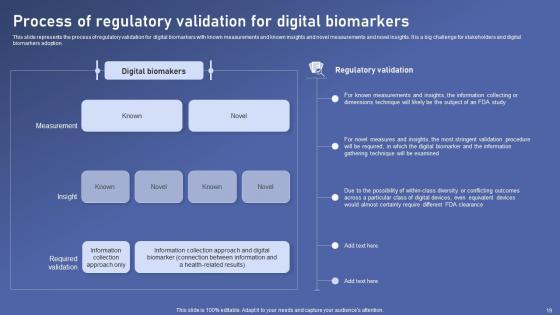 This slide represents the process of regulatory validation for digital biomarkers with known measurements and known insights and novel measurements and novel insights. It is a big challenge for stakeholders and digital biomarkers adoption. Do you have to make sure that everyone on your team knows about any specific topic I yes, then you should give Process Of Regulatory Validation Biomedical Data Science And Health Informatics Ideas Pdf a try. Our experts have put a lot of knowledge and effort into creating this impeccable Process Of Regulatory Validation Biomedical Data Science And Health Informatics Ideas Pdf. You can use this template for your upcoming presentations, as the slides are perfect to represent even the tiniest detail. You can download these templates from the Slidegeeks website and these are easy to edit. So grab these today This slide represents the process of regulatory validation for digital biomarkers with known measurements and known insights and novel measurements and novel insights. It is a big challenge for stakeholders and digital biomarkers adoption.