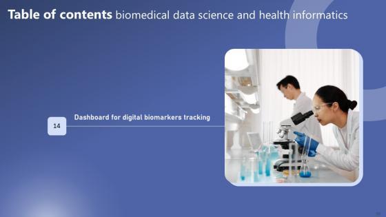 Slidegeeks is here to make your presentations a breeze with Table Of Contents Biomedical Data Science And Health Informatics Inspiration Pdf With our easy to use and customizable templates, you can focus on delivering your ideas rather than worrying about formatting. With a variety of designs to choose from, you are sure to find one that suits your needs. And with animations and unique photos, illustrations, and fonts, you can make your presentation pop. So whether you are giving a sales pitch or presenting to the board, make sure to check out Slidegeeks first Our Table Of Contents Biomedical Data Science And Health Informatics Inspiration Pdf are topically designed to provide an attractive backdrop to any subject. Use them to look like a presentation pro.