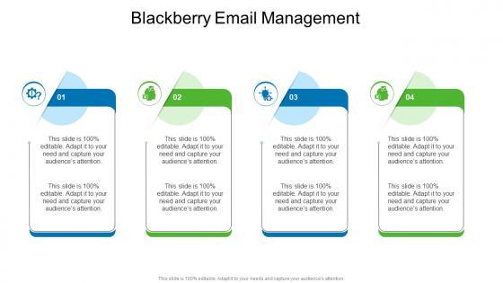 Introducing our well-designed Blackberry Email Management In Powerpoint And Google Slides Cpb. This PowerPoint design presents information on topics like Blackberry Email Management. As it is predesigned it helps boost your confidence level. It also makes you a better presenter because of its high-quality content and graphics. This PPT layout can be downloaded and used in different formats like PDF, PNG, and JPG. Not only this, it is available in both Standard Screen and Widescreen aspect ratios for your convenience. Therefore, click on the download button now to persuade and impress your audience. Our Blackberry Email Management In Powerpoint And Google Slides Cpb are topically designed to provide an attractive backdrop to any subject. Use them to look like a presentation pro.
