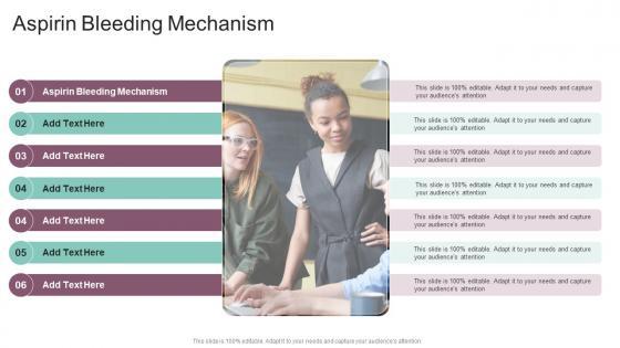 Introducing our well designed Aspirins Bleeding Mechanism In Powerpoint And Google Slides Cpb. This PowerPoint design presents information on topics like Aspirins Bleeding Mechanism. As it is predesigned it helps boost your confidence level. It also makes you a better presenter because of its high-quality content and graphics. This PPT layout can be downloaded and used in different formats like PDF, PNG, and JPG. Not only this, it is available in both Standard Screen and Widescreen aspect ratios for your convenience. Therefore, click on the download button now to persuade and impress your audience. Our Aspirins Bleeding Mechanism In Powerpoint And Google Slides Cpb are topically designed to provide an attractive backdrop to any subject. Use them to look like a presentation pro.