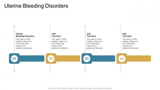 Presenting our innovatively designed set of slides titled Uterine Bleeding Disorders In Powerpoint And Google Slides Cpb This completely editable PowerPoint graphic exhibits Uterine Bleeding Disorders that will help you convey the message impactfully. It can be accessed with Google Slides and is available in both standard screen and widescreen aspect ratios. Apart from this, you can download this well structured PowerPoint template design in different formats like PDF, JPG, and PNG. So, click the download button now to gain full access to this PPT design. Our Uterine Bleeding Disorders In Powerpoint And Google Slides Cpb are topically designed to provide an attractive backdrop to any subject. Use them to look like a presentation pro.