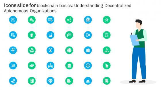 If you are looking for a format to display your unique thoughts, then the professionally designed Icons Slide For Blockchain Basics Understanding Decentralized Autonomous Ppt Slides BCT SS V is the one for you. You can use it as a Google Slides template or a PowerPoint template. Incorporate impressive visuals, symbols, images, and other charts. Modify or reorganize the text boxes as you desire. Experiment with shade schemes and font pairings. Alter, share or cooperate with other people on your work. Download Icons Slide For Blockchain Basics Understanding Decentralized Autonomous Ppt Slides BCT SS V and find out how to give a successful presentation. Present a perfect display to your team and make your presentation unforgettable. Our Icons Slide For Blockchain Basics Understanding Decentralized Autonomous Ppt Slides BCT SS V are topically designed to provide an attractive backdrop to any subject. Use them to look like a presentation pro.