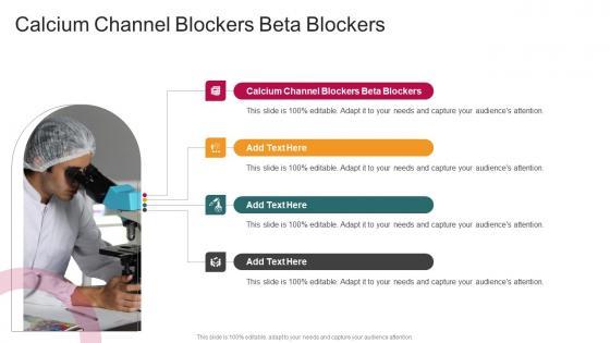 Presenting our innovatively designed set of slides titled Calcium Channel Blockers Beta Blockers In Powerpoint And Google Slides Cpb. This completely editable PowerPoint graphic exhibits Calcium Channel Blockers Beta Blockers that will help you convey the message impactfully. It can be accessed with Google Slides and is available in both standard screen and widescreen aspect ratios. Apart from this, you can download this well structured PowerPoint template design in different formats like PDF, JPG, and PNG. So, click the download button now to gain full access to this PPT design. Our Calcium Channel Blockers Beta Blockers In Powerpoint And Google Slides Cpb are topically designed to provide an attractive backdrop to any subject. Use them to look like a presentation pro.