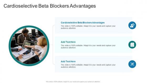 Introducing our well designed Cardioselective Beta Blockers Advantages In Powerpoint And Google Slides Cpb. This PowerPoint design presents information on topics like Cardioselective Beta Blockers Advantages. As it is predesigned it helps boost your confidence level. It also makes you a better presenter because of its high quality content and graphics. This PPT layout can be downloaded and used in different formats like PDF, PNG, and JPG. Not only this, it is available in both Standard Screen and Widescreen aspect ratios for your convenience. Therefore, click on the download button now to persuade and impress your audience. Our Cardioselective Beta Blockers Advantages In Powerpoint And Google Slides Cpb are topically designed to provide an attractive backdrop to any subject. Use them to look like a presentation pro.