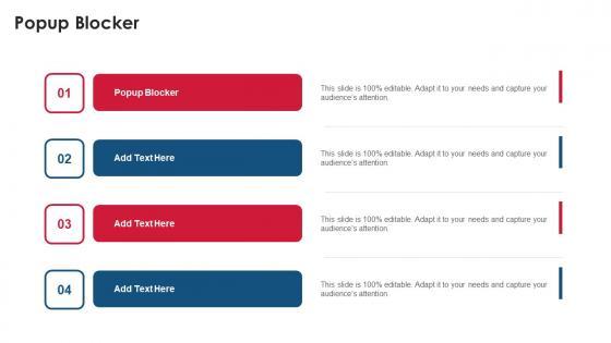 Presenting our innovatively-designed set of slides titled Popup Blocker In Powerpoint And Google Slides Cpb. This completely editable PowerPoint graphic exhibits Popup Blocker that will help you convey the message impactfully. It can be accessed with Google Slides and is available in both standard screen and widescreen aspect ratios. Apart from this, you can download this well-structured PowerPoint template design in different formats like PDF, JPG, and PNG. So, click the download button now to gain full access to this PPT design. Our Popup Blocker In Powerpoint And Google Slides Cpb are topically designed to provide an attractive backdrop to any subject. Use them to look like a presentation pro.
