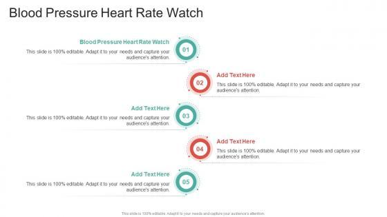Introducing our well-designed Blood Pressure Heart Rate Watch In Powerpoint And Google Slides Cpb. This PowerPoint design presents information on topics like Blood Pressure Heart Rate Watch. As it is predesigned it helps boost your confidence level. It also makes you a better presenter because of its high-quality content and graphics. This PPT layout can be downloaded and used in different formats like PDF, PNG, and JPG. Not only this, it is available in both Standard Screen and Widescreen aspect ratios for your convenience. Therefore, click on the download button now to persuade and impress your audience. Our Blood Pressure Heart Rate Watch In Powerpoint And Google Slides Cpb are topically designed to provide an attractive backdrop to any subject. Use them to look like a presentation pro.