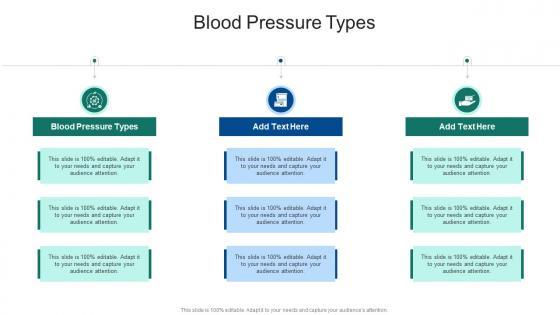 Introducing our well-designed Blood Pressure Types In Powerpoint And Google Slides Cpb. This PowerPoint design presents information on topics like Blood Pressure Types. As it is predesigned it helps boost your confidence level. It also makes you a better presenter because of its high-quality content and graphics. This PPT layout can be downloaded and used in different formats like PDF, PNG, and JPG. Not only this, it is available in both Standard Screen and Widescreen aspect ratios for your convenience. Therefore, click on the download button now to persuade and impress your audience. Our Blood Pressure Types In Powerpoint And Google Slides Cpb are topically designed to provide an attractive backdrop to any subject. Use them to look like a presentation pro.