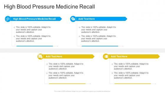 Presenting our innovatively designed set of slides titled High Blood Pressure Medicine Recall In Powerpoint And Google Slides Cpb. This completely editable PowerPoint graphic exhibits High Blood Pressure Medicine Recall that will help you convey the message impactfully. It can be accessed with Google Slides and is available in both standard screen and widescreen aspect ratios. Apart from this, you can download this well structured PowerPoint template design in different formats like PDF, JPG, and PNG. So, click the download button now to gain full access to this PPT design. Our High Blood Pressure Medicine Recall In Powerpoint And Google Slides Cpb are topically designed to provide an attractive backdrop to any subject. Use them to look like a presentation pro.
