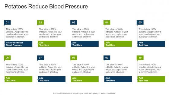 Presenting our innovatively designed set of slides titled Potatoes Reduce Blood Pressure In Powerpoint And Google Slides Cpb. This completely editable PowerPoint graphic exhibits Potatoes Reduce Blood Pressure that will help you convey the message impactfully. It can be accessed with Google Slides and is available in both standard screen and widescreen aspect ratios. Apart from this, you can download this well structured PowerPoint template design in different formats like PDF, JPG, and PNG. So, click the download button now to gain full access to this PPT design. Our Potatoes Reduce Blood Pressure In Powerpoint And Google Slides Cpb are topically designed to provide an attractive backdrop to any subject. Use them to look like a presentation pro.