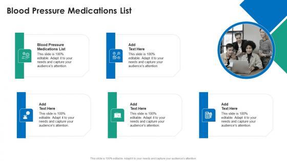 Presenting our innovatively designed set of slides titled Blood Pressure Medications List In Powerpoint And Google Slides Cpb. This completely editable PowerPoint graphic exhibits Blood Pressure Medications List that will help you convey the message impactfully. It can be accessed with Google Slides and is available in both standard screen and widescreen aspect ratios. Apart from this, you can download this well structured PowerPoint template design in different formats like PDF, JPG, and PNG. So, click the download button now to gain full access to this PPT design. Our Blood Pressure Medications List In Powerpoint And Google Slides Cpb are topically designed to provide an attractive backdrop to any subject. Use them to look like a presentation pro.