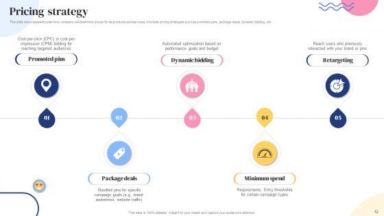 This slide showcases the plan how company will determine prices for its products and services. It include pricing strategies such as promoted pins, package deals, dynamic bidding, etc. Do you have an important presentation coming up Are you looking for something that will make your presentation stand out from the rest Look no further than Pricing Strategy Social Bookmarking Platform Business Model BMC SS V. With our professional designs, you can trust that your presentation will pop and make delivering it a smooth process. And with Slidegeeks, you can trust that your presentation will be unique and memorable. So why wait Grab Pricing Strategy Social Bookmarking Platform Business Model today and make your presentation stand out from the rest This slide showcases the plan how company will determine prices for its products and services. It include pricing strategies such as promoted pins, package deals, dynamic bidding, etc.
