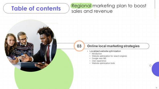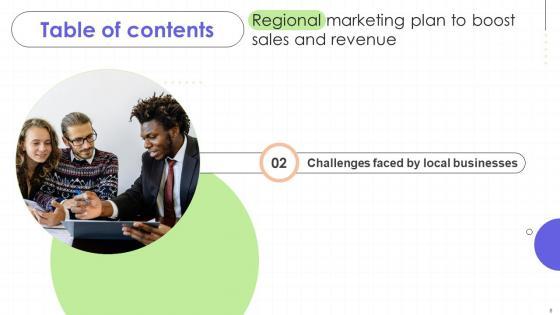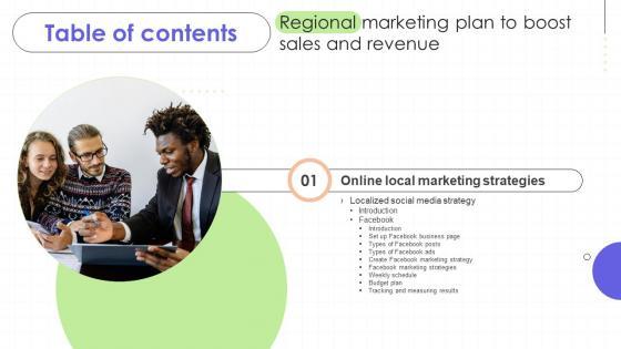 Find a pre-designed and impeccable Regional Marketing Plan To Boost Sales And Revenue Table Of Contents MKT SS. The templates can ace your presentation without additional effort. You can download these easy-to-edit presentation templates to make your presentation stand out from others. So, what are you waiting for Download the template from Slidegeeks today and give a unique touch to your presentation. Our Regional Marketing Plan To Boost Sales And Revenue Table Of Contents MKT SS are topically designed to provide an attractive backdrop to any subject. Use them to look like a presentation pro.