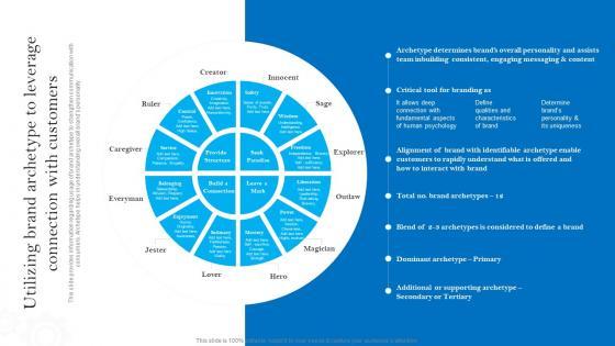 This slide provides information regarding usage of brand archetype to strengthen communication with consumers. Archetype helps in understanding overall brands personality. The Utilizing Brand Archetype To Leverage Connection With Customers Graphics PDF is a compilation of the most recent design trends as a series of slides. It is suitable for any subject or industry presentation, containing attractive visuals and photo spots for businesses to clearly express their messages. This template contains a variety of slides for the user to input data, such as structures to contrast two elements, bullet points, and slides for written information. Slidegeeks is prepared to create an impression.