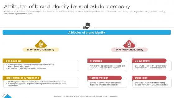 This slide covers characteristics of brand identity based on internal and external factors. The purpose of this template is to provide an overview on elements such as brand purpose, target profiles or buyer persona, brand logo, colour palette, taglines and brand voice. Want to ace your presentation in front of a live audience Our Blueprint For Effective Real Attributes Of Brand Identity For Real Estate Company Strategy SS V can help you do that by engaging all the users towards you. Slidegeeks experts have put their efforts and expertise into creating these impeccable powerpoint presentations so that you can communicate your ideas clearly. Moreover, all the templates are customizable, and easy-to-edit and downloadable. Use these for both personal and commercial use. This slide covers characteristics of brand identity based on internal and external factors. The purpose of this template is to provide an overview on elements such as brand purpose, target profiles or buyer persona, brand logo, colour palette, taglines and brand voice.
