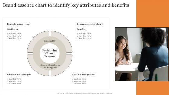 This modern and well arranged Brand Essence Chart To Identify Key Attributes And Benefits Portrait PDF provides lots of creative possibilities. It is very simple to customize and edit with the Powerpoint Software. Just drag and drop your pictures into the shapes. All facets of this template can be edited with Powerpoint no extra software is necessary. Add your own material, put your images in the places assigned for them, adjust the colors, and then you can show your slides to the world, with an animated slide included.