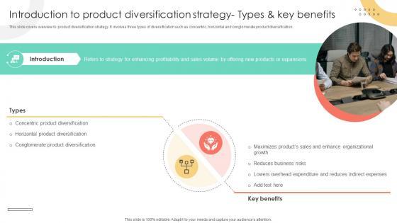 This slide covers overview to product diversification strategy. It involves three types of diversification such as concentric, horizontal and conglomerate product diversification. If your project calls for a presentation, then Slidegeeks is your go-to partner because we have professionally designed, easy-to-edit templates that are perfect for any presentation. After downloading, you can easily edit Brand Extension Techniques Introduction To Product Diversification Strategy Types Strategy SS V and make the changes accordingly. You can rearrange slides or fill them with different images. Check out all the handy templates This slide covers overview to product diversification strategy. It involves three types of diversification such as concentric, horizontal and conglomerate product diversification.