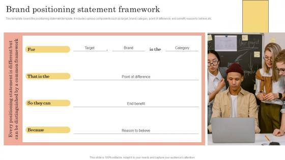This template covers the positioning statement template. It includes various components such as target, brand, category, point of difference, end benefit, reason to believe,etc. Crafting an eye-catching presentation has never been more straightforward. Let your presentation shine with this tasteful yet straightforward Brand Kickoff Promotional Plan Brand Positioning Statement Framework Inspiration Pdf template. It offers a minimalistic and classy look that is great for making a statement. The colors have been employed intelligently to add a bit of playfulness while still remaining professional. Construct the ideal Brand Kickoff Promotional Plan Brand Positioning Statement Framework Inspiration Pdf that effortlessly grabs the attention of your audience. Begin now and be certain to wow your customers. This template covers the positioning statement template. It includes various components such as target, brand, category, point of difference, end benefit, reason to believe,etc.