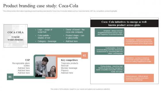 This slide provides information regarding product branding case study for Coca-Cola. It includes details such as brand elements, USP, key competitors, product highlights. This Product Branding Case Study Coca Cola Effective Brand Maintenance Elements Pdf from Slidegeeks makes it easy to present information on your topic with precision. It provides customization options, so you can make changes to the colors, design, graphics, or any other component to create a unique layout. It is also available for immediate download, so you can begin using it right away. Slidegeeks has done good research to ensure that you have everything you need to make your presentation stand out. Make a name out there for a brilliant performance. This slide provides information regarding product branding case study for Coca-Cola. It includes details such as brand elements, USP, key competitors, product highlights.