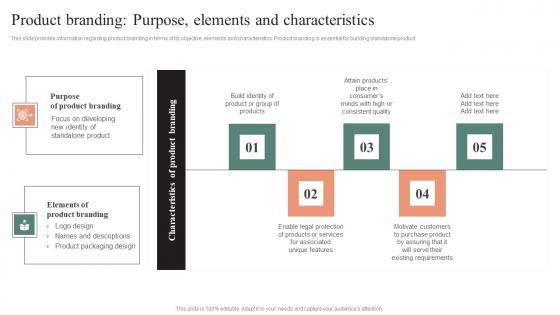 This slide provides information regarding product branding in terms of its objective, elements and characteristics. Product branding is essential for building standalone product. Do you know about Slidesgeeks Product Branding Purpose Elements And Characteristics Effective Brand Maintenance Pictures Pdf These are perfect for delivering any kind od presentation. Using it, create PowerPoint presentations that communicate your ideas and engage audiences. Save time and effort by using our pre-designed presentation templates that are perfect for a wide range of topic. Our vast selection of designs covers a range of styles, from creative to business, and are all highly customizable and easy to edit. Download as a PowerPoint template or use them as Google Slides themes. This slide provides information regarding product branding in terms of its objective, elements and characteristics. Product branding is essential for building standalone product.