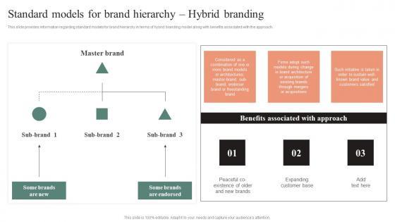 This slide provides information regarding standard models for brand hierarchy in terms of hybrid branding model along with benefits associated with the approach. There are so many reasons you need a Standard Models For Brand Hierarchy Hybrid Branding Effective Brand Maintenance Ideas Pdf The first reason is you can not spend time making everything from scratch, Thus, Slidegeeks has made presentation templates for you too. You can easily download these templates from our website easily. This slide provides information regarding standard models for brand hierarchy in terms of hybrid branding model along with benefits associated with the approach.