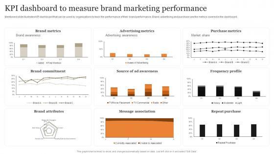 Mentioned slide illustrates KPI dashboard that can be used by organizations to track the performance of their brand performance. Brand, advertising and purchase are the metrics covered in the dashboard. Presenting this PowerPoint presentation, titled KPI Dashboard To Measure Brand Marketing Performance Ultimate Guide Implementing Demonstration Pdf with topics curated by our researchers after extensive research. This editable presentation is available for immediate download and provides attractive features when used. Download now and captivate your audience. Presenting this KPI Dashboard To Measure Brand Marketing Performance Ultimate Guide Implementing Demonstration Pdf Our researchers have carefully researched and created these slides with all aspects taken into consideration. This is a completely customizable KPI Dashboard To Measure Brand Marketing Performance Ultimate Guide Implementing Demonstration Pdf that is available for immediate downloading. Download now and make an impact on your audience. Highlight the attractive features available with our PPTs. Mentioned slide illustrates KPI dashboard that can be used by organizations to track the performance of their brand performance. Brand, advertising and purchase are the metrics covered in the dashboard.