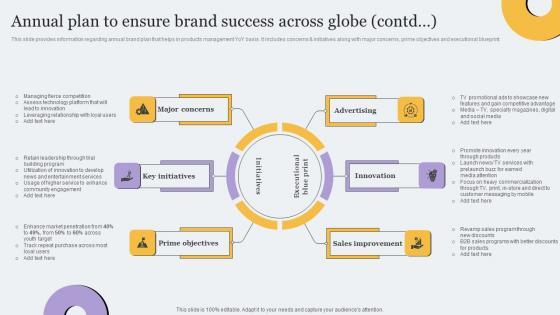 Slidegeeks is one of the best resources for PowerPoint templates. You can download easily and regulate Strategic Guide To Build Brand Personality Annual Plan To Ensure Brand Success Across Globe Topics PDF for your personal presentations from our wonderful collection. A few clicks is all it takes to discover and get the most relevant and appropriate templates. Use our Templates to add a unique zing and appeal to your presentation and meetings. All the slides are easy to edit and you can use them even for advertisement purposes.