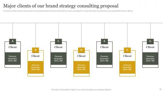 The purpose of this slide is to showcase the most important clients which have worked with our brand consulting firm. It covers information about the total sales generated for clients by offering. Stand out from the crowd with our dynamic Brand Presence Enhancement Consulting Major Clients Of Our Brand Strategy Inspiration Pdf template. Designed to help you make a statement, this single-slide PPT template is fully customizable to suit your unique needs. With eye-catching visuals and seamless editing options, you can create impactful presentations in minutes. Say goodbye to boring slides and unlock your presentation potential with our top-notch template. The purpose of this slide is to showcase the most important clients which have worked with our brand consulting firm. It covers information about the total sales generated for clients by offering.