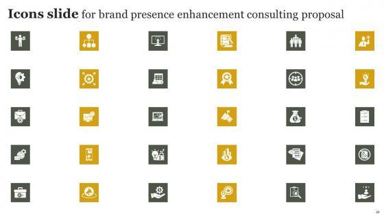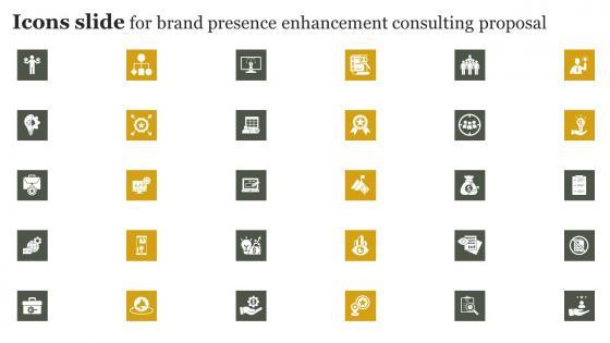 Download our innovative and attention grabbing Icons Slide For Brand Presence Enhancement Consulting Proposal Introduction Pdf template. The set of slides exhibit completely customizable icons. These icons can be incorporated into any business presentation. So download it immediately to clearly communicate with your clientele. Our Icons Slide For Brand Presence Enhancement Consulting Proposal Introduction Pdf are topically designed to provide an attractive backdrop to any subject. Use them to look like a presentation pro.