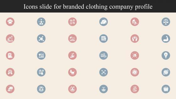 Introducing our well designed Icons Slide For Branded Clothing Company Profile PPT Template CP SS V set of slides. The slide displays editable icons to enhance your visual presentation. The icons can be edited easily. So customize according to your business to achieve a creative edge. Download and share it with your audience. Our Icons Slide For Branded Clothing Company Profile PPT Template CP SS V are topically designed to provide an attractive backdrop to any subject. Use them to look like a presentation pro.
