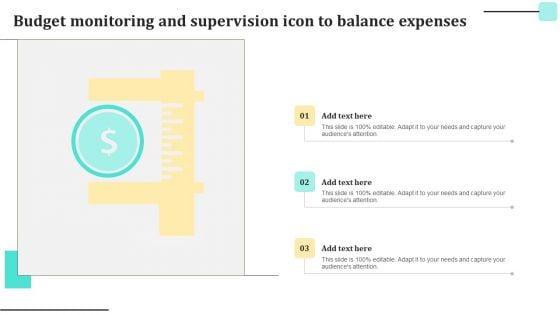 Persuade your audience using this Budget Monitoring And Supervision Icon To Balance Expenses Professional PDF. This PPT design covers three stages, thus making it a great tool to use. It also caters to a variety of topics including Budget, Monitoring, Supervision. Download this PPT design now to present a convincing pitch that not only emphasizes the topic but also showcases your presentation skills.