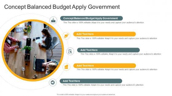Introducing our well designed Concept Balanced Budget Apply Government In Powerpoint And Google Slides Cpb. This PowerPoint design presents information on topics like Concept Balanced Budget Apply Government. As it is predesigned it helps boost your confidence level. It also makes you a better presenter because of its high quality content and graphics. This PPT layout can be downloaded and used in different formats like PDF, PNG, and JPG. Not only this, it is available in both Standard Screen and Widescreen aspect ratios for your convenience. Therefore, click on the download button now to persuade and impress your audience. Our Concept Balanced Budget Apply Government In Powerpoint And Google Slides Cpb are topically designed to provide an attractive backdrop to any subject. Use them to look like a presentation pro.