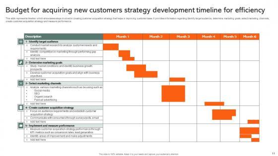 Do you have to make sure that everyone on your team knows about any specific topic I yes, then you should give Timeline Strategies For Acquiring Consumers With Customer Acquisition Budget Sample PDF a try. Our experts have put a lot of knowledge and effort into creating this impeccable Timeline Strategies For Acquiring Consumers With Customer Acquisition Budget Sample PDF. You can use this template for your upcoming presentations, as the slides are perfect to represent even the tiniest detail. You can download these templates from the Slidegeeks website and these are easy to edit. So grab these today.