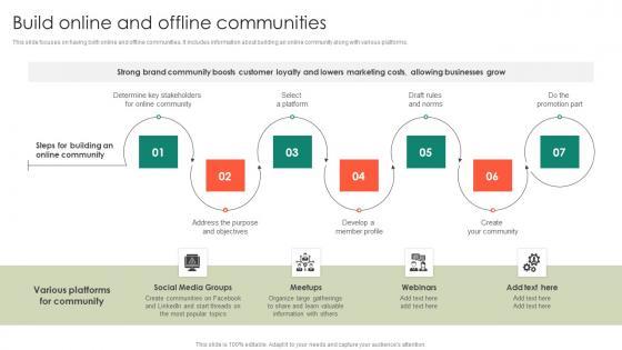 This slide focuses on having both online and offline communities. It includes information about building an online community along with various platforms.Get a simple yet stunning designed Build Online And Offline Communities Entrepreneurs Roadmap To Effective Microsoft Pdf. It is the best one to establish the tone in your meetings. It is an excellent way to make your presentations highly effective. So, download this PPT today from Slidegeeks and see the positive impacts. Our easy-to-edit Build Online And Offline Communities Entrepreneurs Roadmap To Effective Microsoft Pdf can be your go-to option for all upcoming conferences and meetings. So, what are you waiting for Grab this template today. This slide focuses on having both online and offline communities. It includes information about building an online community along with various platforms.