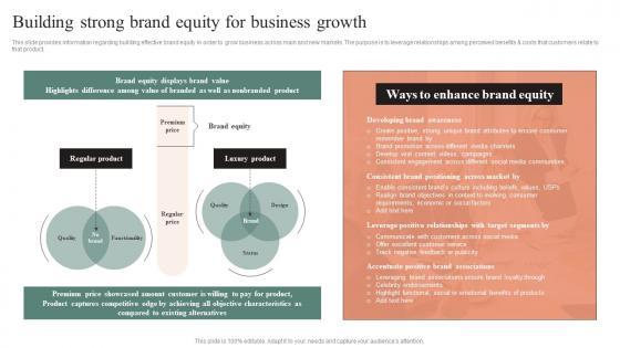 This slide provides information regarding building effective brand equity in order to grow business across main and new markets. The purpose is to leverage relationships among perceived benefits and costs that customers relate to that product. Do you have to make sure that everyone on your team knows about any specific topic I yes, then you should give Building Strong Brand Equity For Business Growth Effective Brand Maintenance Guidelines Pdf a try. Our experts have put a lot of knowledge and effort into creating this impeccable Building Strong Brand Equity For Business Growth Effective Brand Maintenance Guidelines Pdf You can use this template for your upcoming presentations, as the slides are perfect to represent even the tiniest detail. You can download these templates from the Slidegeeks website and these are easy to edit. So grab these today. This slide provides information regarding building effective brand equity in order to grow business across main and new markets. The purpose is to leverage relationships among perceived benefits and costs that customers relate to that product.
